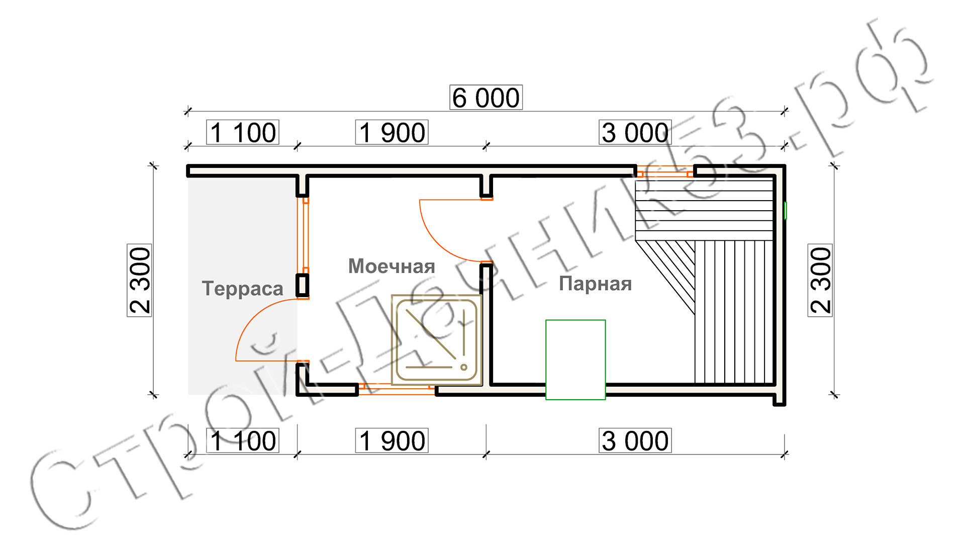 Мобильная баня Скандинавия–6, план бани