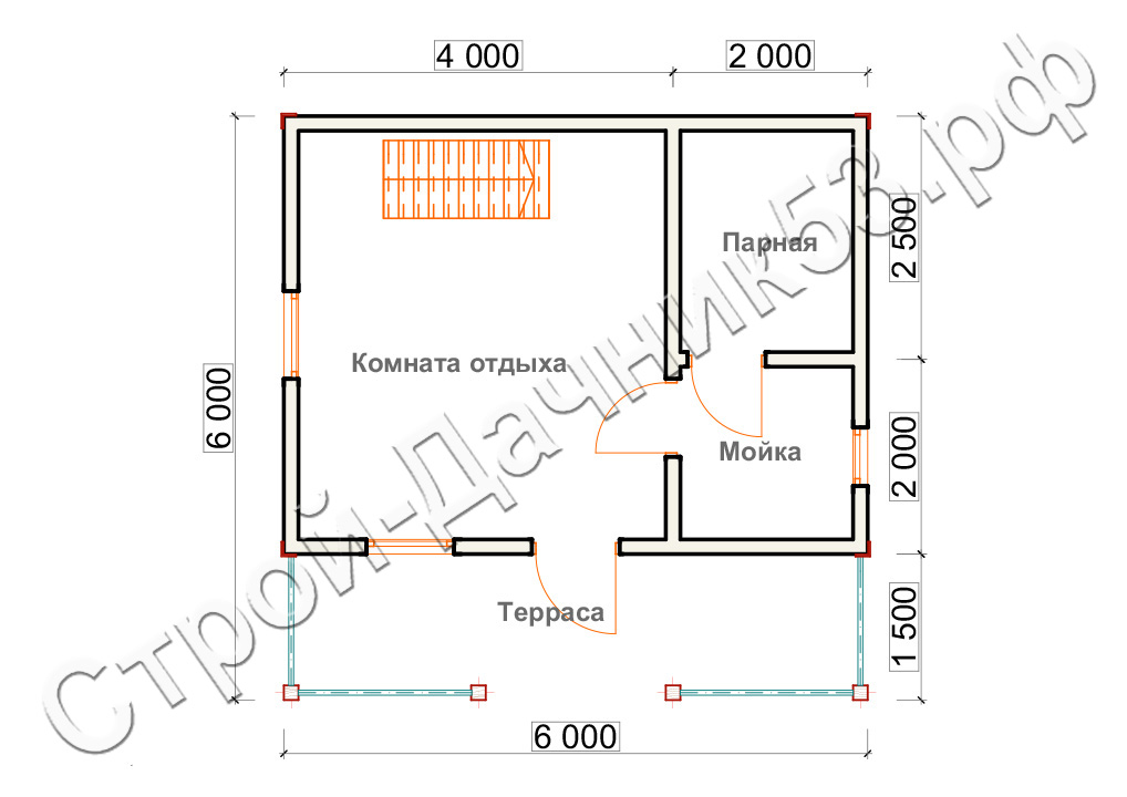 Проект бани Б–25, план 1-го этажа