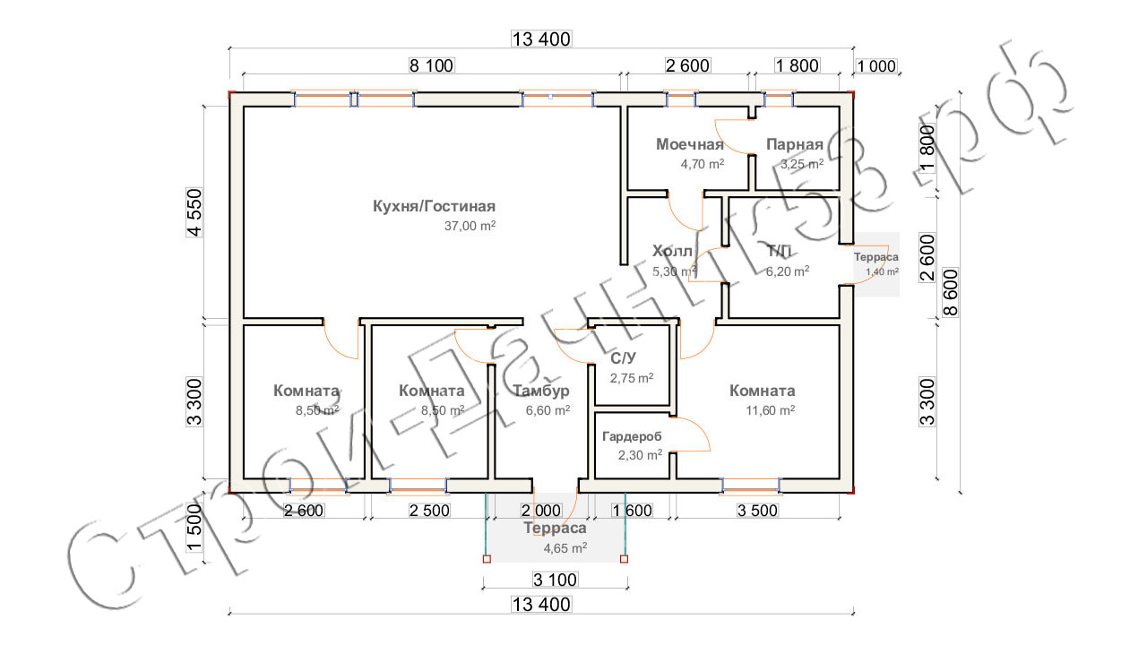 • Стоимость из бруса 140 × 190 мм рассчитывается по запросу.