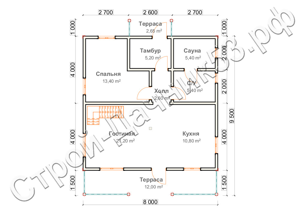 9.5x8м