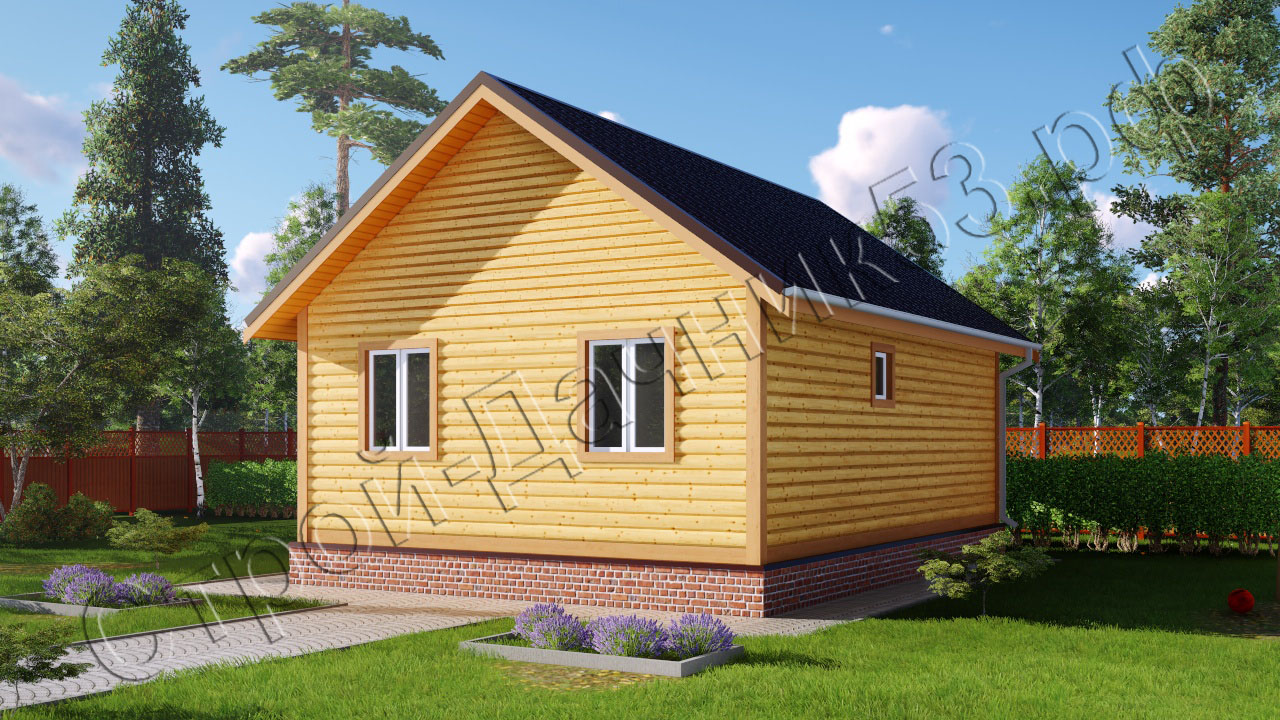 • Очень уютный, отличной планировки дом с классической двухскатной крышей для проживания 2-3 человек. При входе имеется крытая терраса размером два на четыре метра. Входной тамбур размером 3 кв. м. – удобное место чтобы снять уличную одежду и обувь. После тамбура вы попадаете в центральный холл от куда можно пройти во все помещения дома: небольшой трехметровый санузел, шестиметровую кухню, девятиметровую комнату, и большую, освещаемую с двух сторон окнами гостиную размером четырнадцать метров.