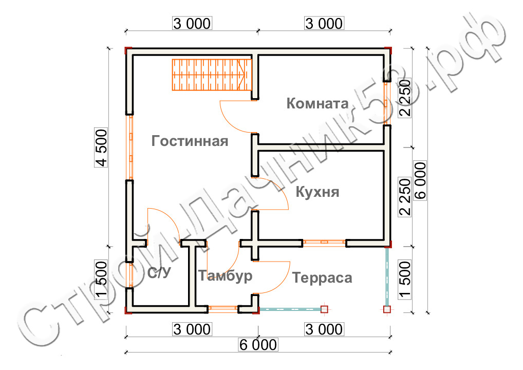 Проект каркасно-щитового дома Д–56, план 1-го этажа