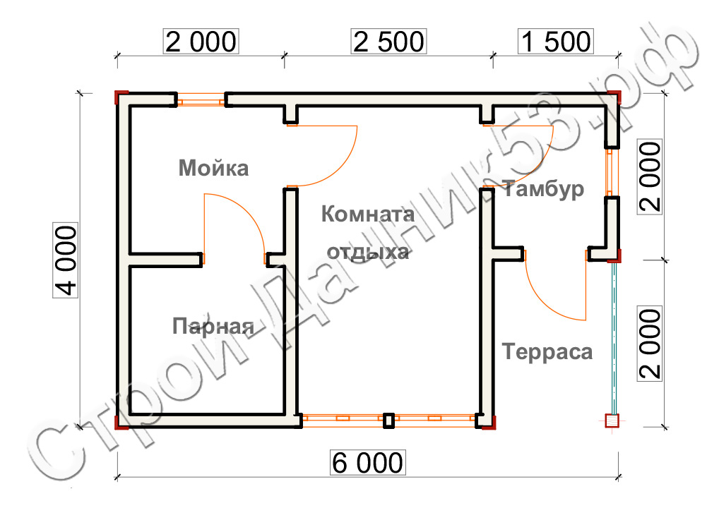 • Стоимость из бруса 140 × 190 мм рассчитывается по запросу.