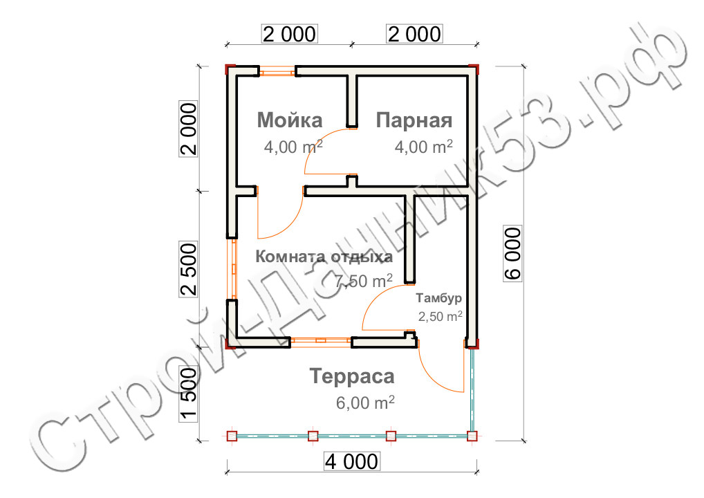 Проект бани Б–40, план 1-го этажа