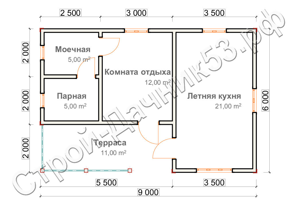 • Стоимость из бруса 140 × 190 мм рассчитывается по запросу.