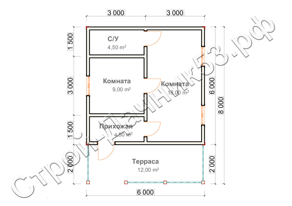 Проект дома ОД–32, план 1-го этажа